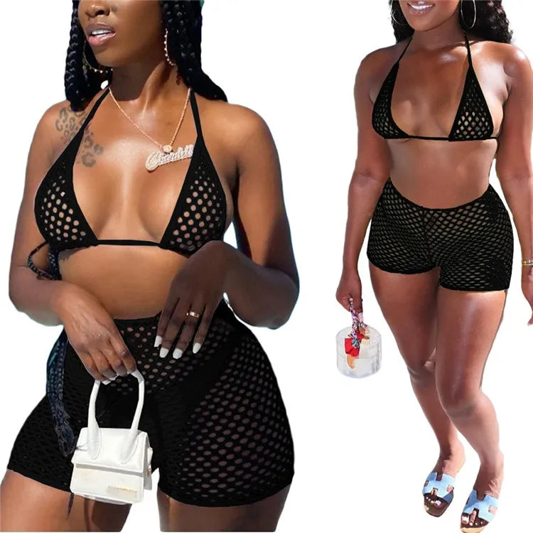 Stay stylish and comfortable at the beach with our Beach Party 3 Piece Bikinis Set. Made with sexy halter bandage design and a hollow out mesh skirt, this swimsuit set is perfect for the summer. Enjoy the sun and the waves in style with this must-have bathing suit.