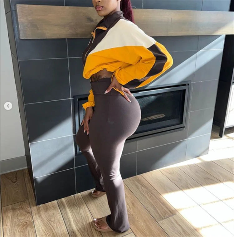 Take your style to the next level with our Live In Colorblock Tracksuit. Perfect for the autumn season, this sporty and casual set features a zip-up long sleeve sweatshirt and drawstring pants in a trendy colorblock design. Stay comfortable and fashionable on the streets with this versatile outfit.