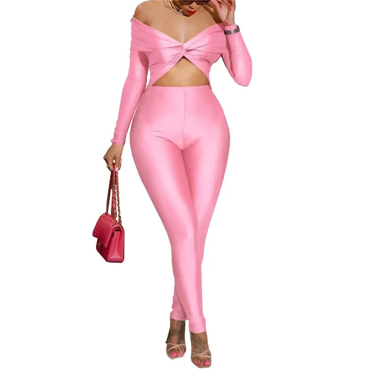 Introducing The One That I Want Cut Out Jumpsuit. Stay stylish and comfortable with this autumn solid jumpsuit featuring a sexy off shoulder design, long sleeves, and a flattering knot detail. Made with high-quality material, this one-piece romper is perfect for any occasion. Get yours now and elevate your wardrobe.